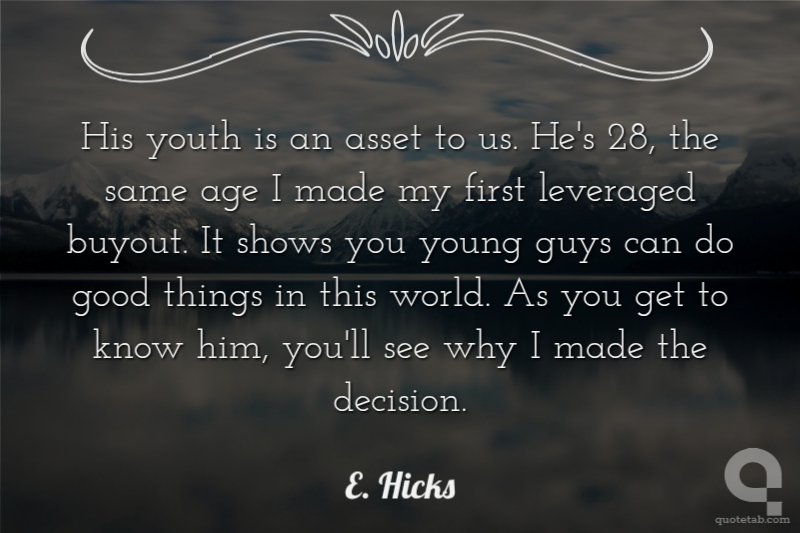 His youth is an asset to us. He's 28, the same age I made my first leveraged buyout. It shows you young guys can do good things in this world. As you get to know him, you'll see why I made the decision.