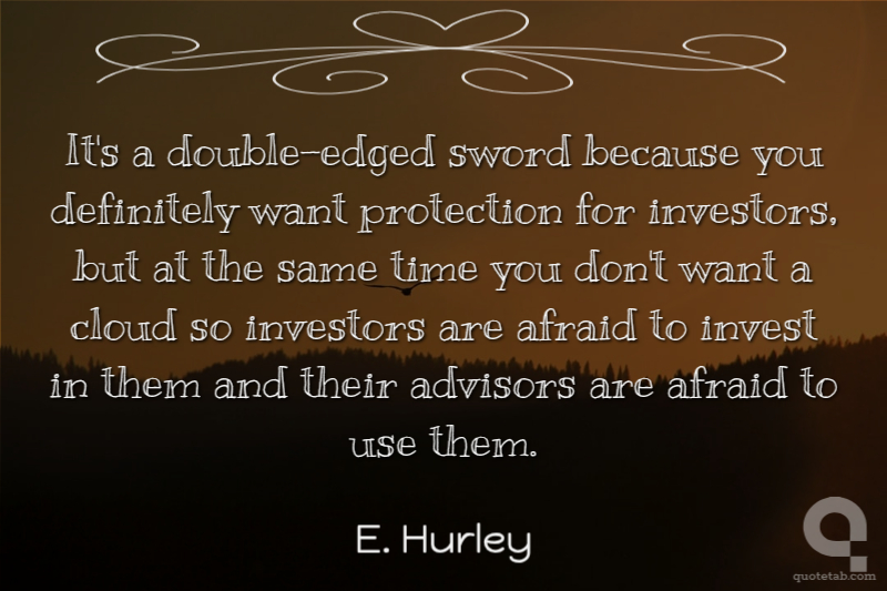 It's a double-edged sword because you definitely want protection for investors, but at the same time you don't want a cloud so investors are afraid to invest in them and their advisors are afraid to use them.