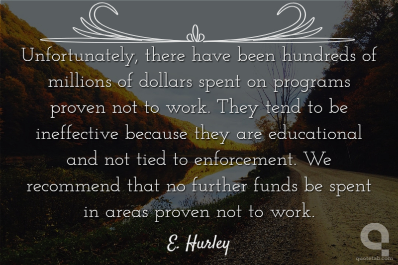 Unfortunately, there have been hundreds of millions of dollars spent on programs proven not to work. They tend to be ineffective because they are educational and not tied to enforcement. We recommend that no further funds be spent in areas proven not to work.