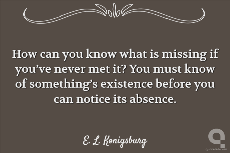 How can you know what is missing if you’ve never met it? You must know of something’s existence before you can notice its absence.