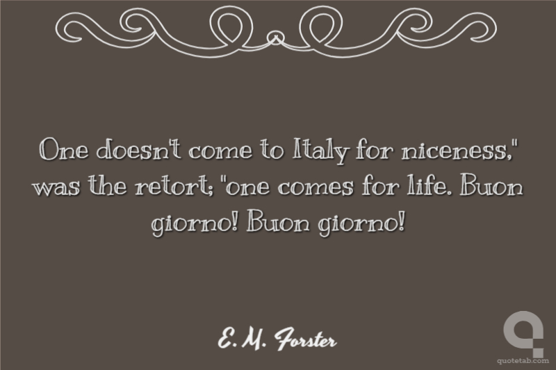 One doesn't come to Italy for niceness," was the retort; "one comes for life. Buon giorno! Buon giorno!