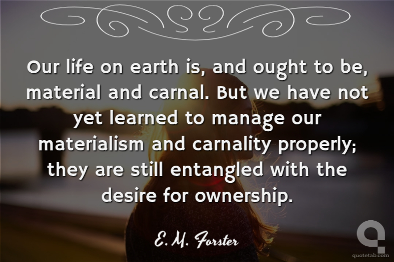 Our life on earth is, and ought to be, material and carnal. But we have not yet learned to manage our materialism and carnality properly; they are still entangled with the desire for ownership.