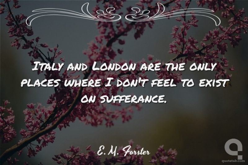 Italy and London are the only places where I don't feel to exist on sufferance.