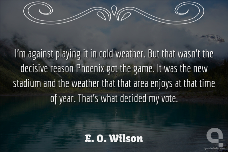 I'm against playing it in cold weather. But that wasn't the decisive reason Phoenix got the game. It was the new stadium and the weather that that area enjoys at that time of year. That's what decided my vote.