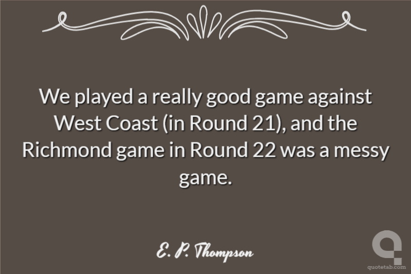 We played a really good game against West Coast (in Round 21), and the Richmond game in Round 22 was a messy game.