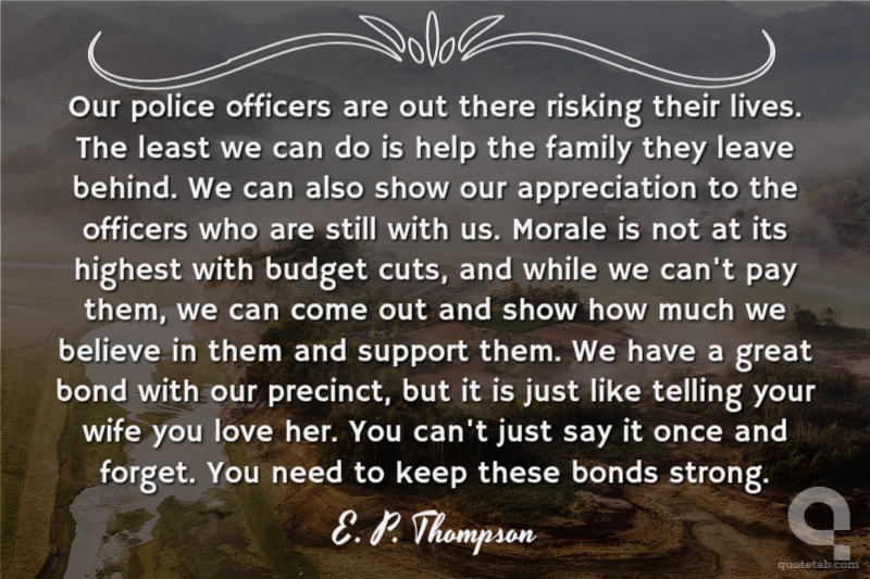 Our police officers are out there risking their lives. The least we can do is help the family they leave behind. We can also show our appreciation to the officers who are still with us. Morale is not at its highest with budget cuts, and while we can't pay them, we can come out and show how much we believe in them and support them. We have a great bond with our precinct, but it is just like telling your wife you love her. You can't just say it once and forget. You need to keep these bonds strong.