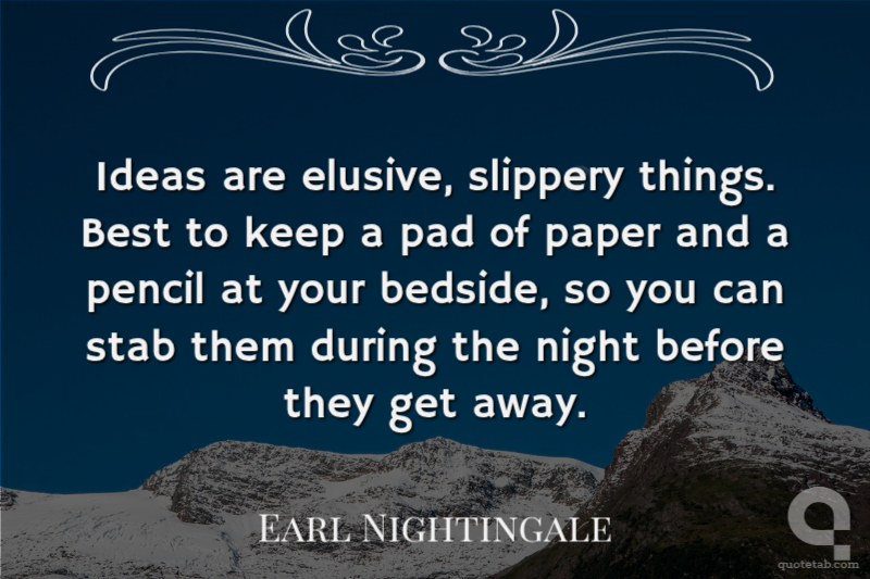 Ideas are elusive, slippery things. Best to keep a pad of paper and a pencil at your bedside, so you can stab them during the night before they get away.