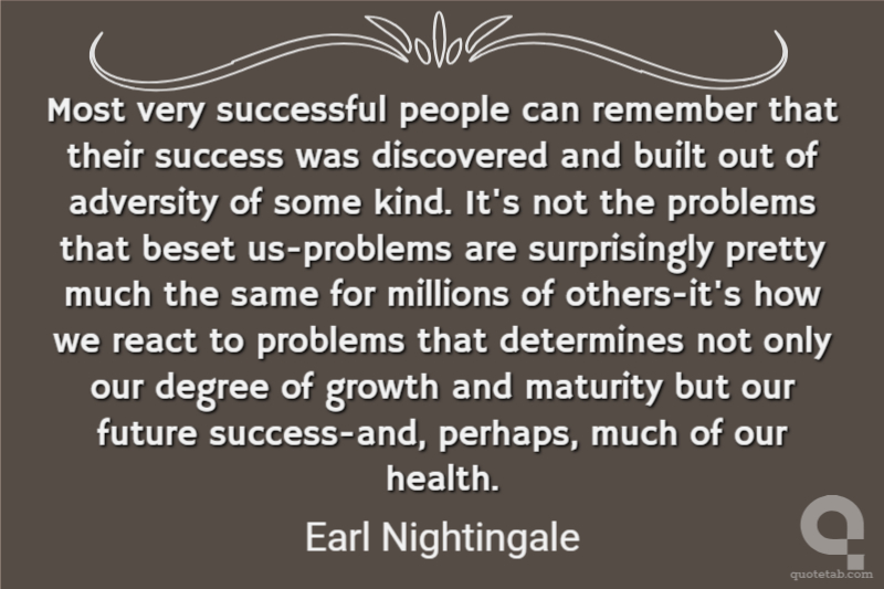 Most very successful people can remember that their success was discovered and built out of adversity of some kind. It's not the problems that beset us-problems are surprisingly pretty much the same for millions of others-it's how we react to problems that determines not only our degree of growth and maturity but our future success-and, perhaps, much of our health.