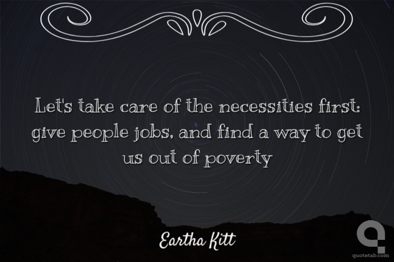 Let's take care of the necessities first: give people jobs, and find a way to get us out of poverty