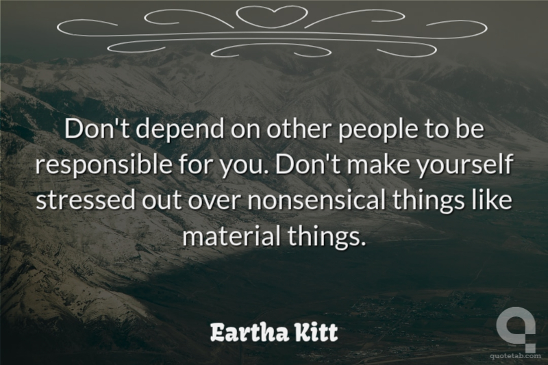 Don't depend on other people to be responsible for you. Don't make yourself stressed out over nonsensical things like material things.