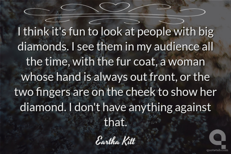 I think it's fun to look at people with big diamonds. I see them in my audience all the time, with the fur coat, a woman whose hand is always out front, or the two fingers are on the cheek to show her diamond. I don't have anything against that.