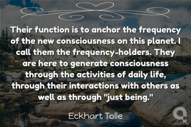 Their function is to anchor the frequency of the new consciousness on this planet. I call them the frequency-holders. They are here to generate consciousness through the activities of daily life, through their interactions with others as well as through "just being."