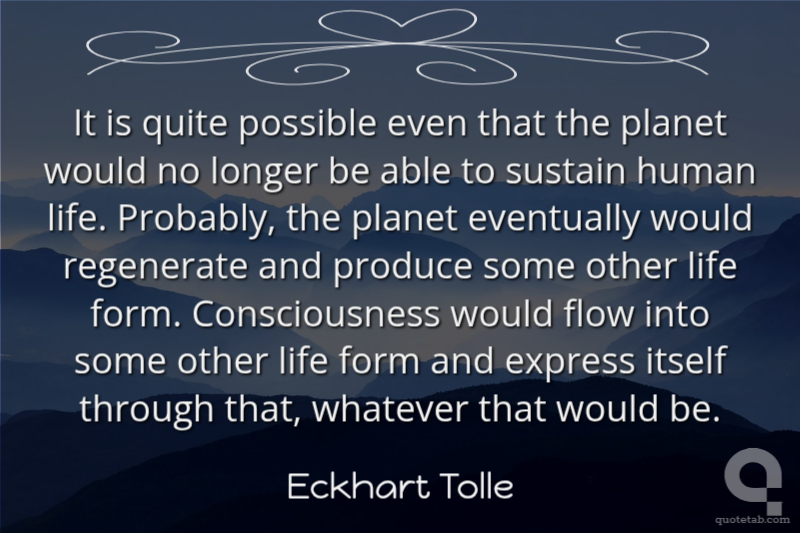 It is quite possible even that the planet would no longer be able to sustain human life. Probably, the planet eventually would regenerate and produce some other life form. Consciousness would flow into some other life form and express itself through that, whatever that would be.