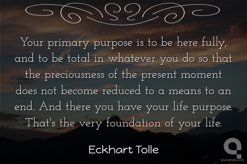 Your primary purpose is to be here fully, and to be total in whatever you do so that the preciousness of the present moment does not become reduced to a means to an end. And there you have your life purpose. That's the very foundation of your life.