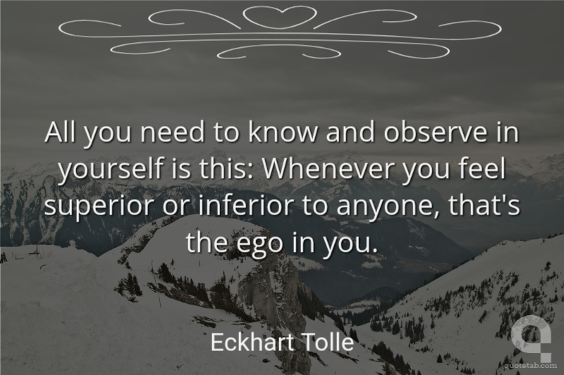 All you need to know and observe in yourself is this: Whenever you feel superior or inferior to anyone, that's the ego in you.