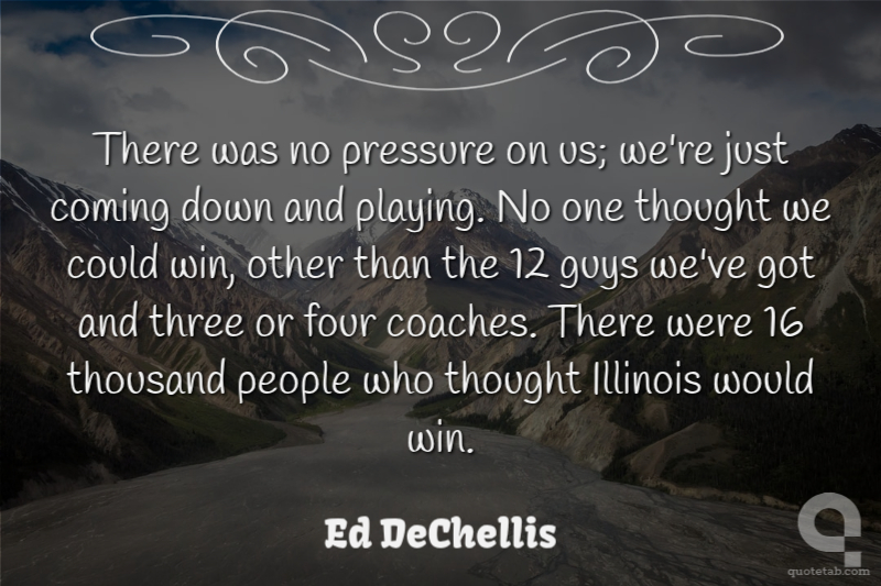 There was no pressure on us; we're just coming down and playing. No one thought we could win, other than the 12 guys we've got and three or four coaches. There were 16 thousand people who thought Illinois would win.