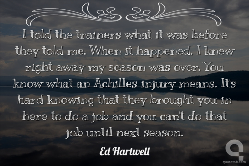 I told the trainers what it was before they told me. When it happened, I knew right away my season was over. You know what an Achilles injury means. It's hard knowing that they brought you in here to do a job and you can't do that job until next season.