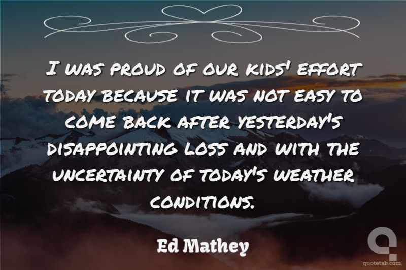 I was proud of our kids' effort today because it was not easy to come back after yesterday's disappointing loss and with the uncertainty of today's weather conditions.