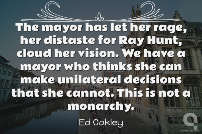 The mayor has let her rage, her distaste for Ray Hunt, cloud her vision. We have a mayor who thinks she can make unilateral decisions that she cannot. This is not a monarchy.