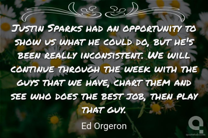 Justin Sparks had an opportunity to show us what he could do, but he's been really inconsistent. We will continue through the week with the guys that we have, chart them and see who does the best job, then play that guy.