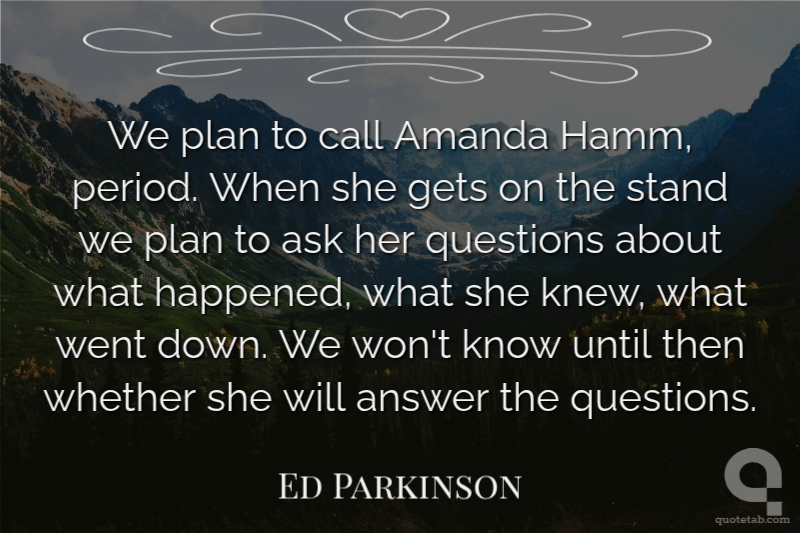 We plan to call Amanda Hamm, period. When she gets on the stand we plan to ask her questions about what happened, what she knew, what went down. We won't know until then whether she will answer the questions.