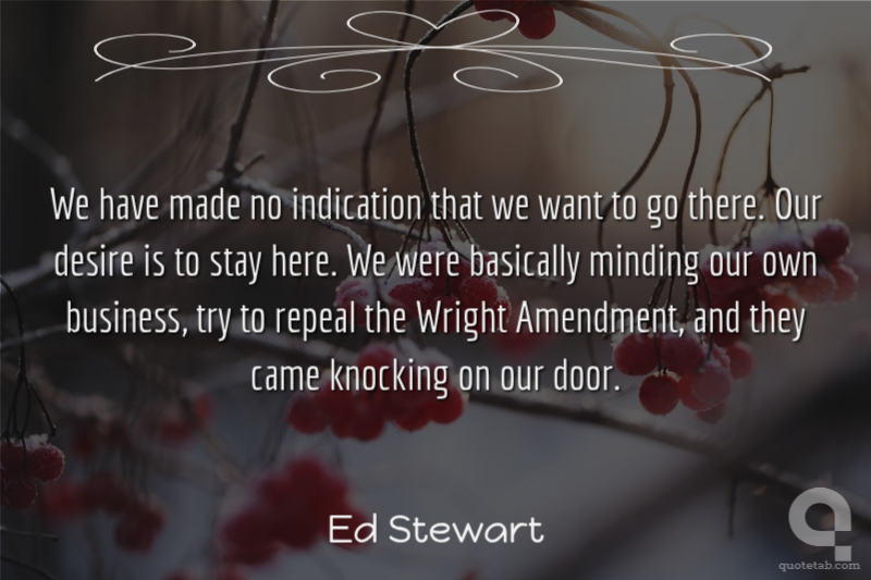 We have made no indication that we want to go there. Our desire is to stay here. We were basically minding our own business, try to repeal the Wright Amendment, and they came knocking on our door.