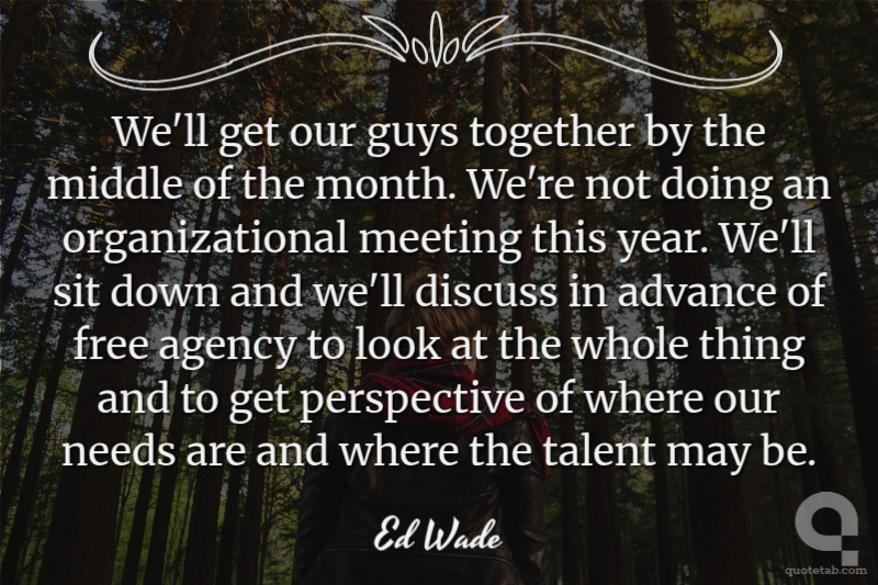 We'll get our guys together by the middle of the month. We're not doing an organizational meeting this year. We'll sit down and we'll discuss in advance of free agency to look at the whole thing and to get perspective of where our needs are and where the talent may be.