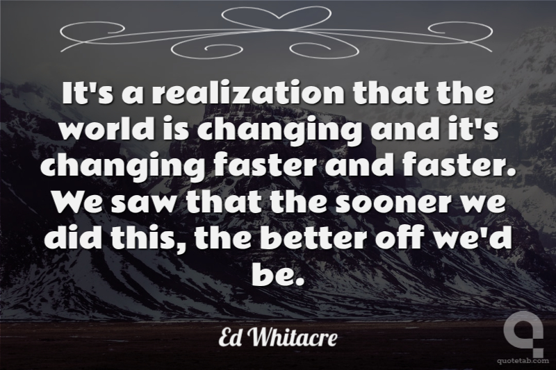 It's a realization that the world is changing and it's changing faster and faster. We saw that the sooner we did this, the better off we'd be.