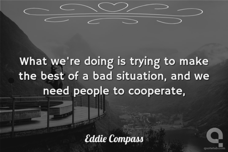What we're doing is trying to make the best of a bad situation, and we need people to cooperate,