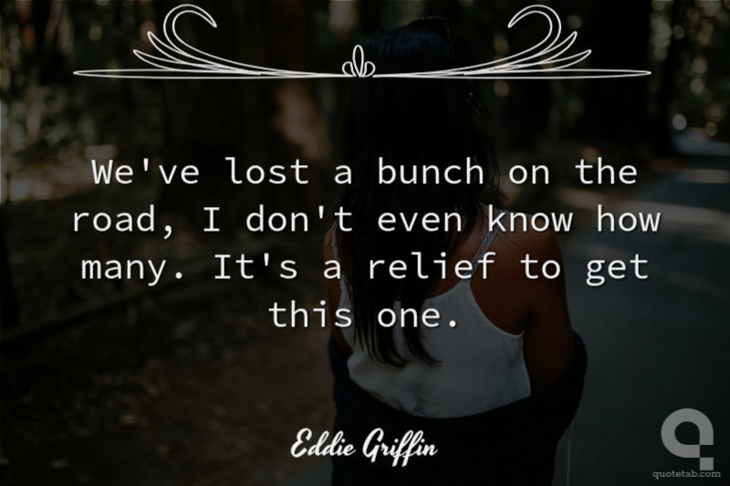 We've lost a bunch on the road, I don't even know how many. It's a relief to get this one.