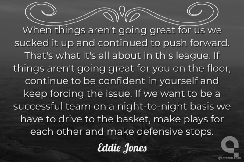 When things aren't going great for us we sucked it up and continued to push forward. That's what it's all about in this league. If things aren't going great for you on the floor, continue to be confident in yourself and keep forcing the issue. If we want to be a successful team on a night-to-night basis we have to drive to the basket, make plays for each other and make defensive stops.