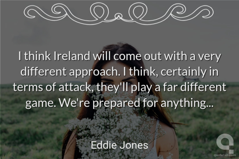 I think Ireland will come out with a very different approach. I think, certainly in terms of attack, they'll play a far different game. We're prepared for anything...
