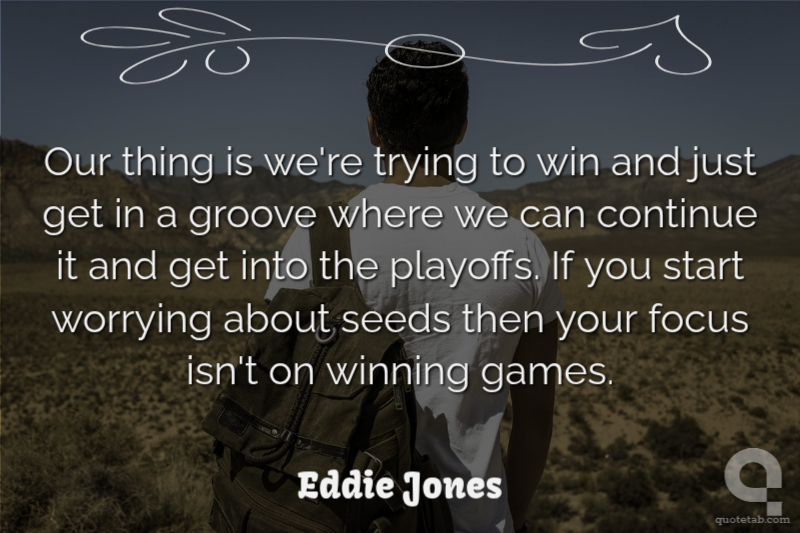 Our thing is we're trying to win and just get in a groove where we can continue it and get into the playoffs. If you start worrying about seeds then your focus isn't on winning games.