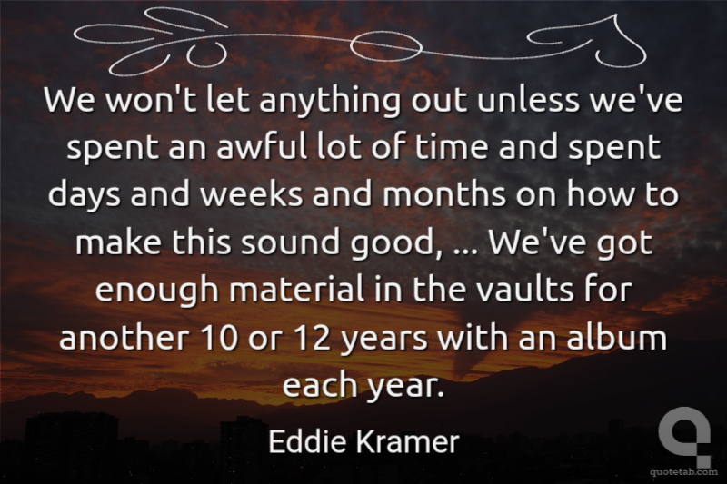 We won't let anything out unless we've spent an awful lot of time and spent days and weeks and months on how to make this sound good, ... We've got enough material in the vaults for another 10 or 12 years with an album each year.