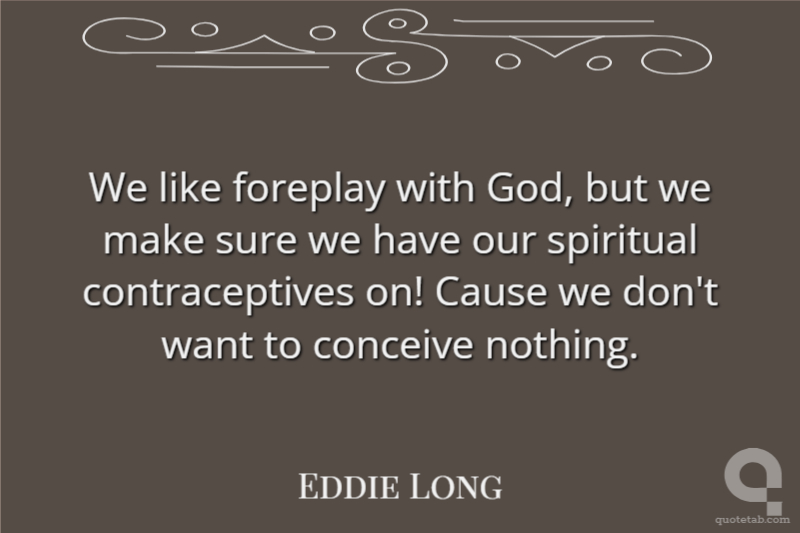 We like foreplay with God, but we make sure we have our spiritual contraceptives on! Cause we don't want to conceive nothing.