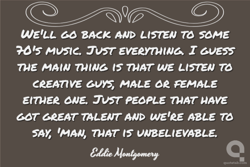 We'll go back and listen to some 70's music. Just everything. I guess the main thing is that we listen to creative guys, male or female either one. Just people that have got great talent and we're able to say, 'man, that is unbelievable.