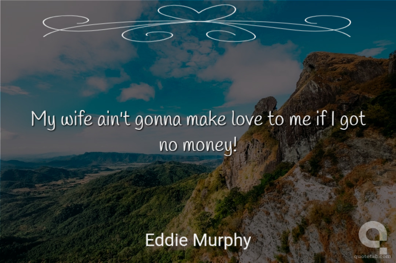 My wife ain't gonna make love to me if I got no money!