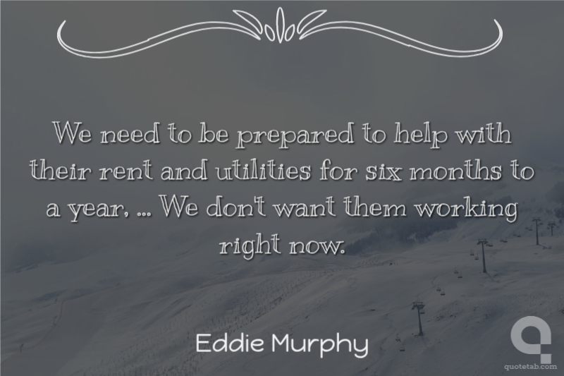 We need to be prepared to help with their rent and utilities for six months to a year, ... We don't want them working right now.