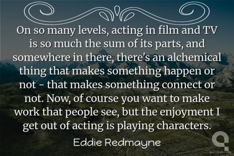 On so many levels, acting in film and TV is so much the sum of its parts, and somewhere in there, there's an alchemical thing that makes something happen or not - that makes something connect or not. Now, of course you want to make work that people see, but the enjoyment I get out of acting is playing characters.