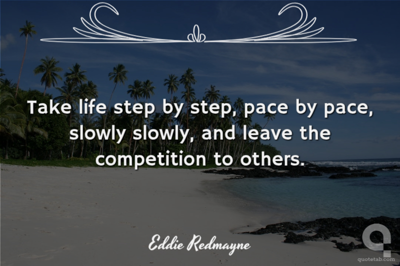 Take life step by step, pace by pace, slowly slowly, and leave the competition to others.