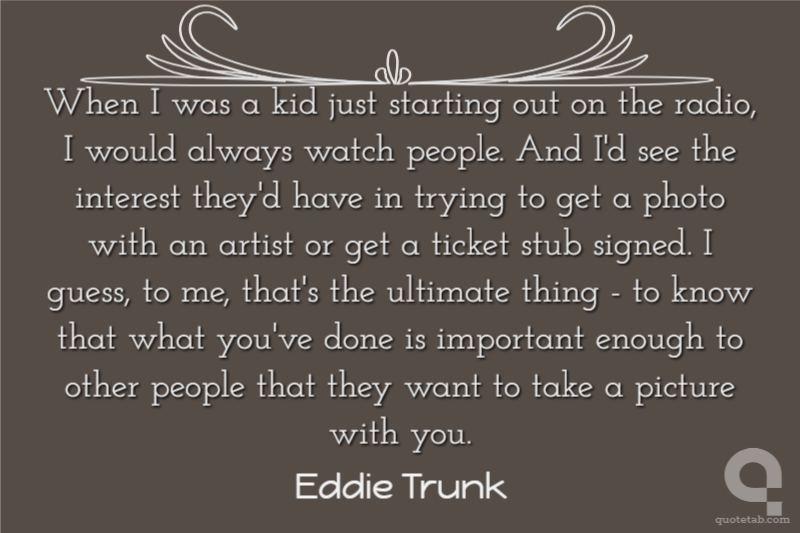 When I was a kid just starting out on the radio, I would always watch people. And I'd see the interest they'd have in trying to get a photo with an artist or get a ticket stub signed. I guess, to me, that's the ultimate thing - to know that what you've done is important enough to other people that they want to take a picture with you.
