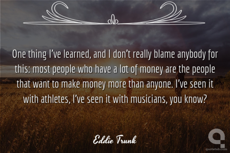 One thing I've learned, and I don't really blame anybody for this: most people who have a lot of money are the people that want to make money more than anyone. I've seen it with athletes, I've seen it with musicians, you know?