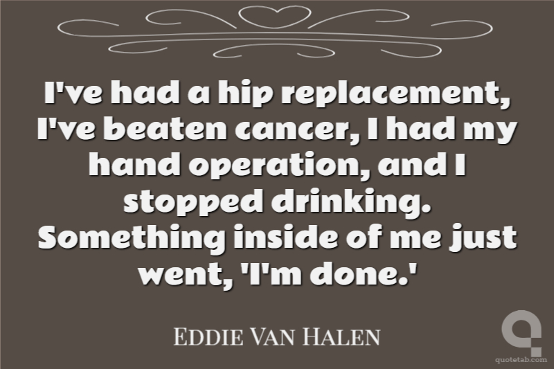 I've had a hip replacement, I've beaten cancer, I had my hand operation, and I stopped drinking. Something inside of me just went, 'I'm done.'