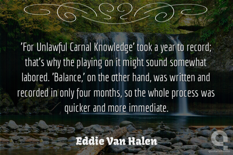 'For Unlawful Carnal Knowledge' took a year to record; that's why the playing on it might sound somewhat labored. 'Balance,' on the other hand, was written and recorded in only four months, so the whole process was quicker and more immediate.