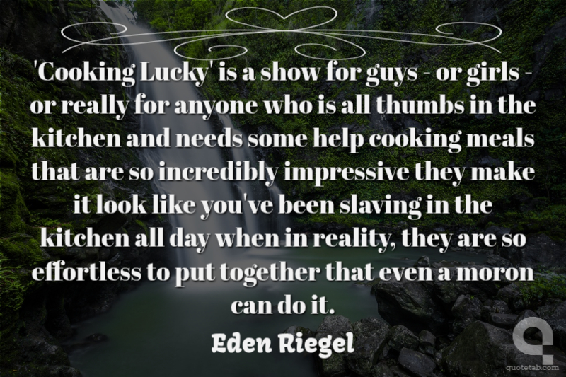 'Cooking Lucky' is a show for guys - or girls - or really for anyone who is all thumbs in the kitchen and needs some help cooking meals that are so incredibly impressive they make it look like you've been slaving in the kitchen all day when in reality, they are so effortless to put together that even a moron can do it.
