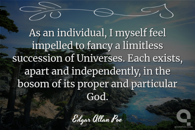 As an individual, I myself feel impelled to fancy a limitless succession of Universes. Each exists, apart and independently, in the bosom of its proper and particular God.