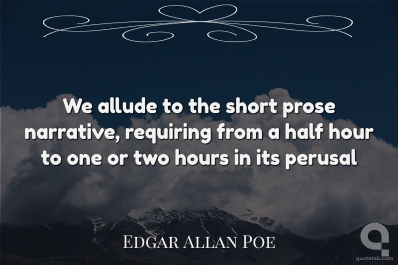 We allude to the short prose narrative, requiring from a half hour to one or two hours in its perusal