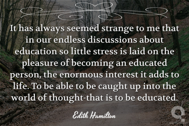 It has always seemed strange to me that in our endless discussions about education so little stress is laid on the pleasure of becoming an educated person, the enormous interest it adds to life. To be able to be caught up into the world of thought-that is to be educated.