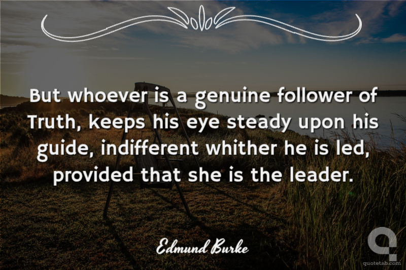 But whoever is a genuine follower of Truth, keeps his eye steady upon his guide, indifferent whither he is led, provided that she is the leader.