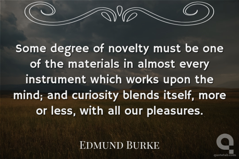 Some degree of novelty must be one of the materials in almost every instrument which works upon the mind; and curiosity blends itself, more or less, with all our pleasures.